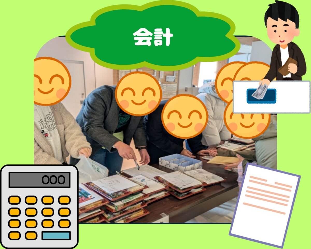 販売を行う時には、お金の計算をし受け取る人、予約の販売のチェックを行う人、お弁当をお客様に渡す人、と分担を決めて行うことができました。