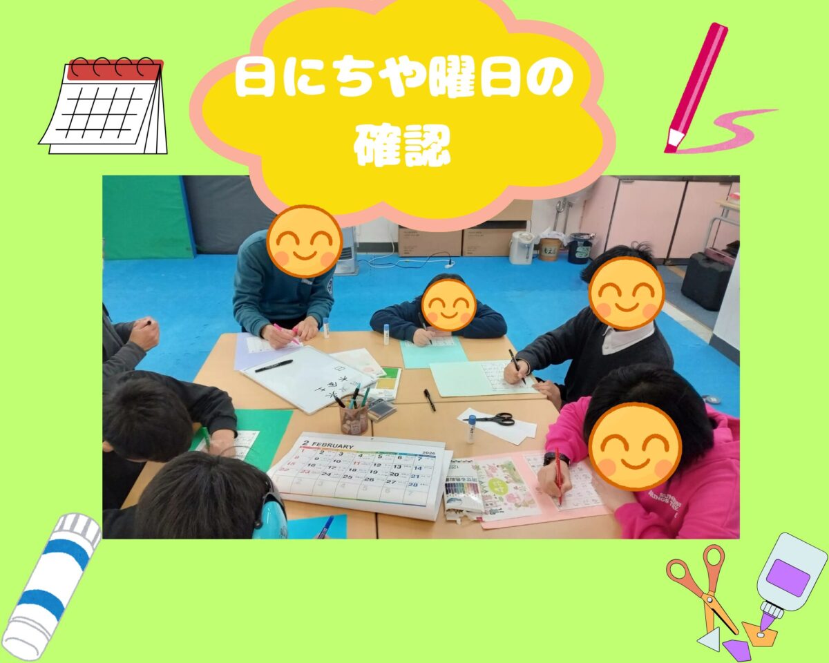 今回は2月のカレンダー作りについて紹介します。カレンダーを見ながら曜日や日付、祝日の確認をして色分けをしたりと工夫して作っている様子が見られました。